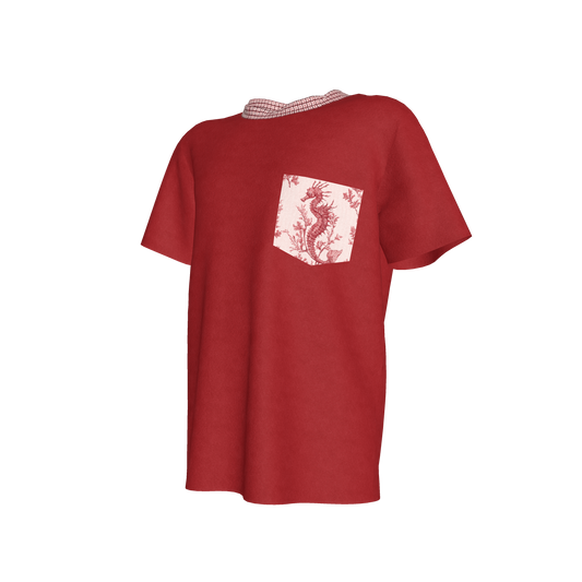 Seahorse Pocket Detail Tee in Red
